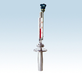 該產(chǎn)品由本體(由上、下導(dǎo)管組成)、翻板箱(由紅、白雙色磁性小翻板組成)、浮子(由磁體、頂桿、浮筒 組成)、以及液位變送器等組成,其結(jié)構(gòu)如圖所示。工作原理為:容器內(nèi)的浮筒(按不同介質(zhì)和壓力針對(duì)研制), 在下導(dǎo)管中隨液面高度的變化而上下浮動(dòng)并通過(guò)頂桿使磁體在上導(dǎo)管內(nèi)上下移動(dòng),促使本體外的翻板翻動(dòng) 并顯示紅、白顏色來(lái)指示液面高度,同時(shí)液位變送器將液位信號(hào)傳送至控制中心進(jìn)行液位指示和控制,也 可通過(guò)計(jì)算機(jī)進(jìn)行集中監(jiān)控。